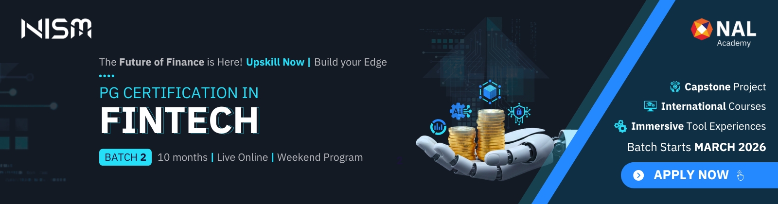 This 10-month, live online weekend program is offered by the combined expertise of National Institute of Securities Markets (NISM) and NAL Academy Limited (a wholly-owned subsidiary of National Stock Exchange).