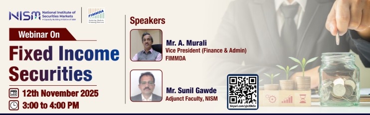 Mr. A. Murali, Vice President (finance and admin), FIMMDA | Mr. Sunil Gawde, Adjunct Faculty, NISM 12th Nov 2025 3:00 pm To 4:00 pm Online